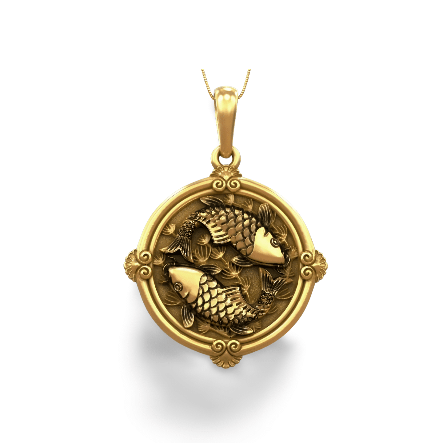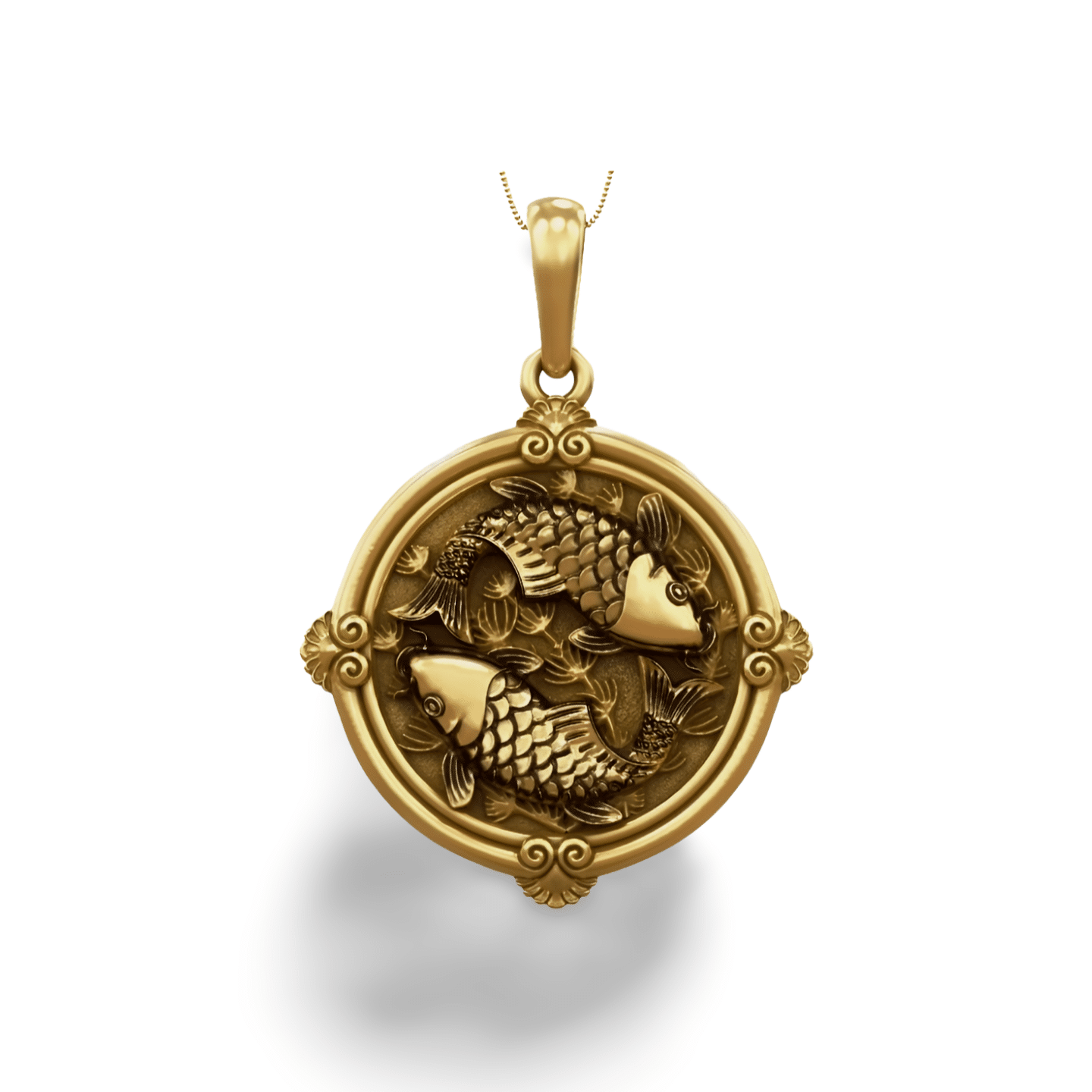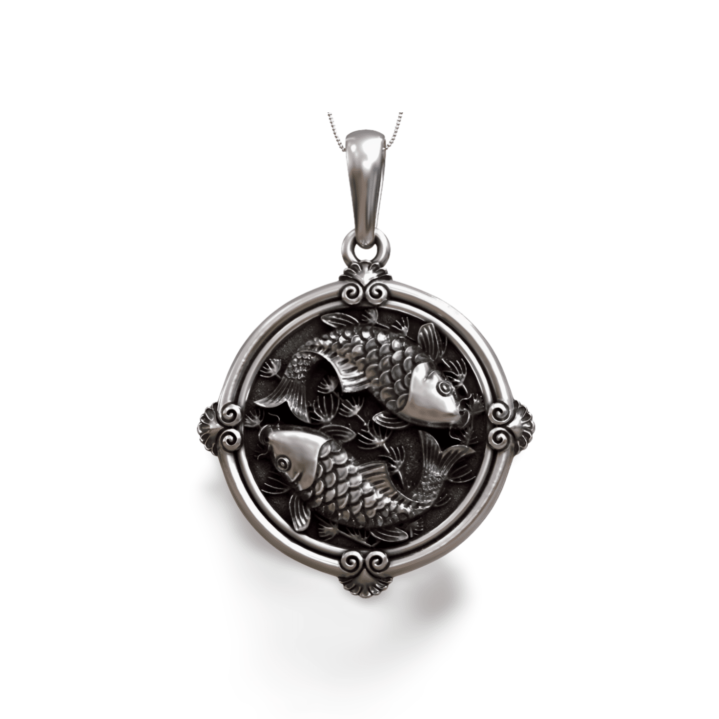 Koi Carp Fish Round 925 Silver Pendant for Men & Women, a detailed koi carp pendant crafted in silver, featuring two koi swimming in harmony inside an ornate circular frame. Perfect symbolic jewelry representing balance, strength and prosperity.