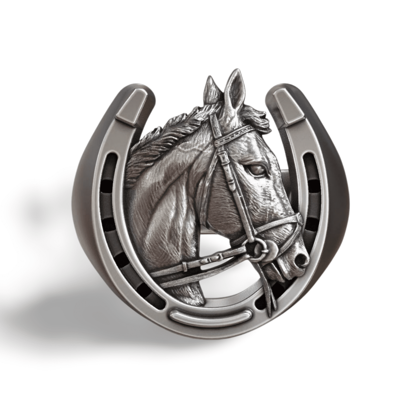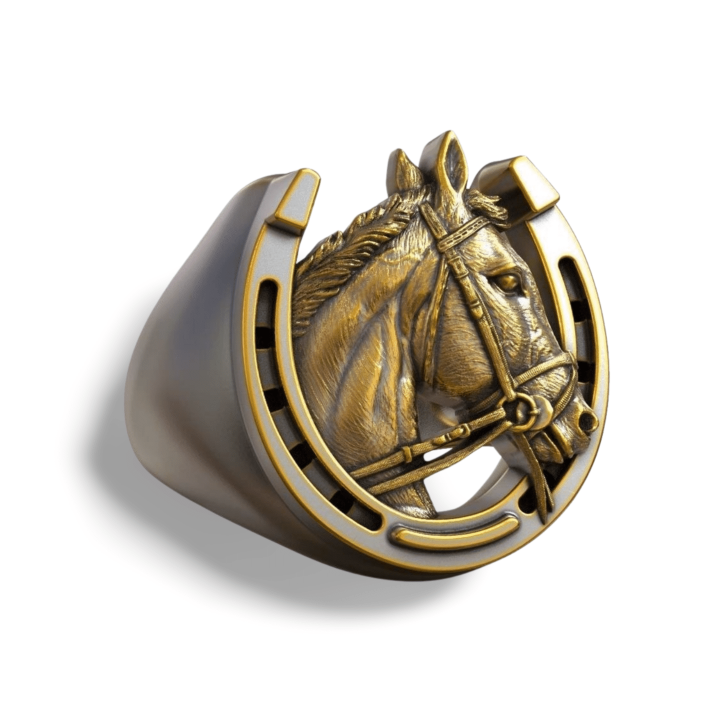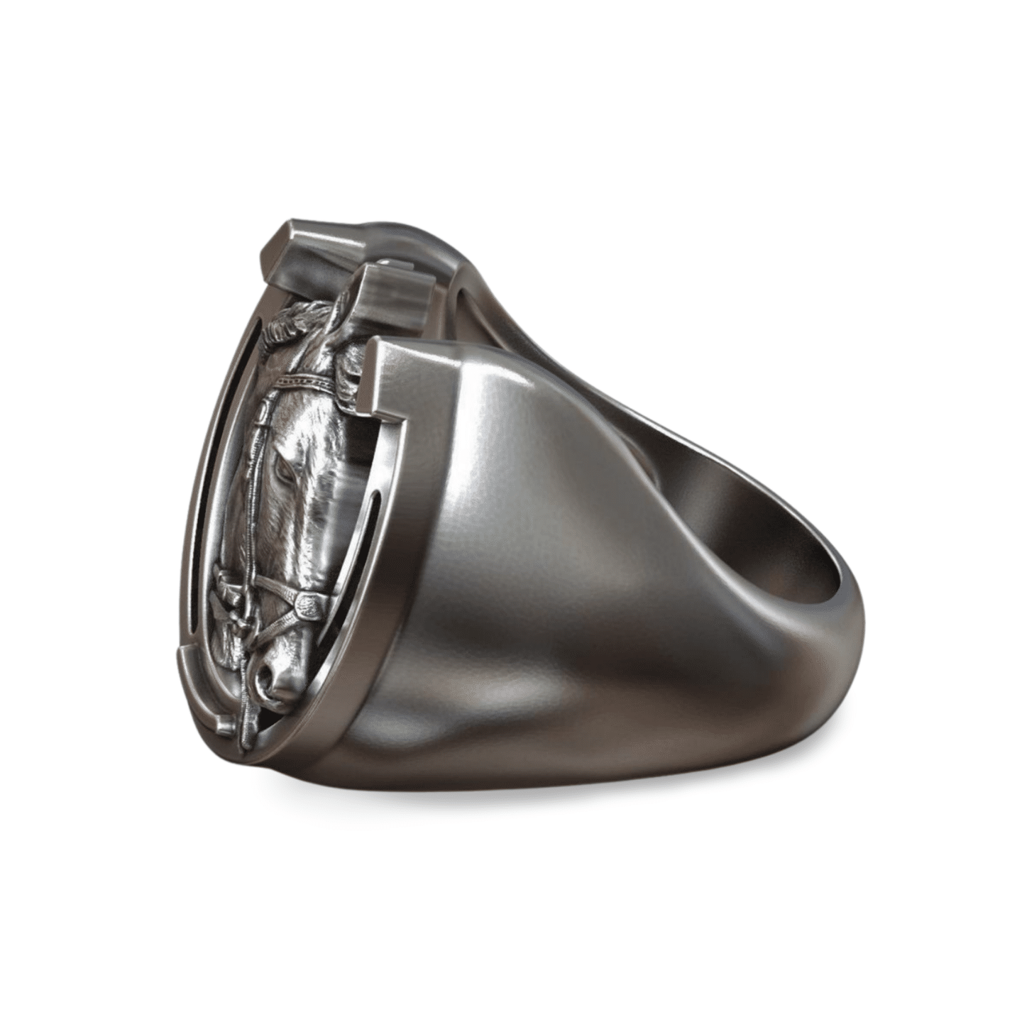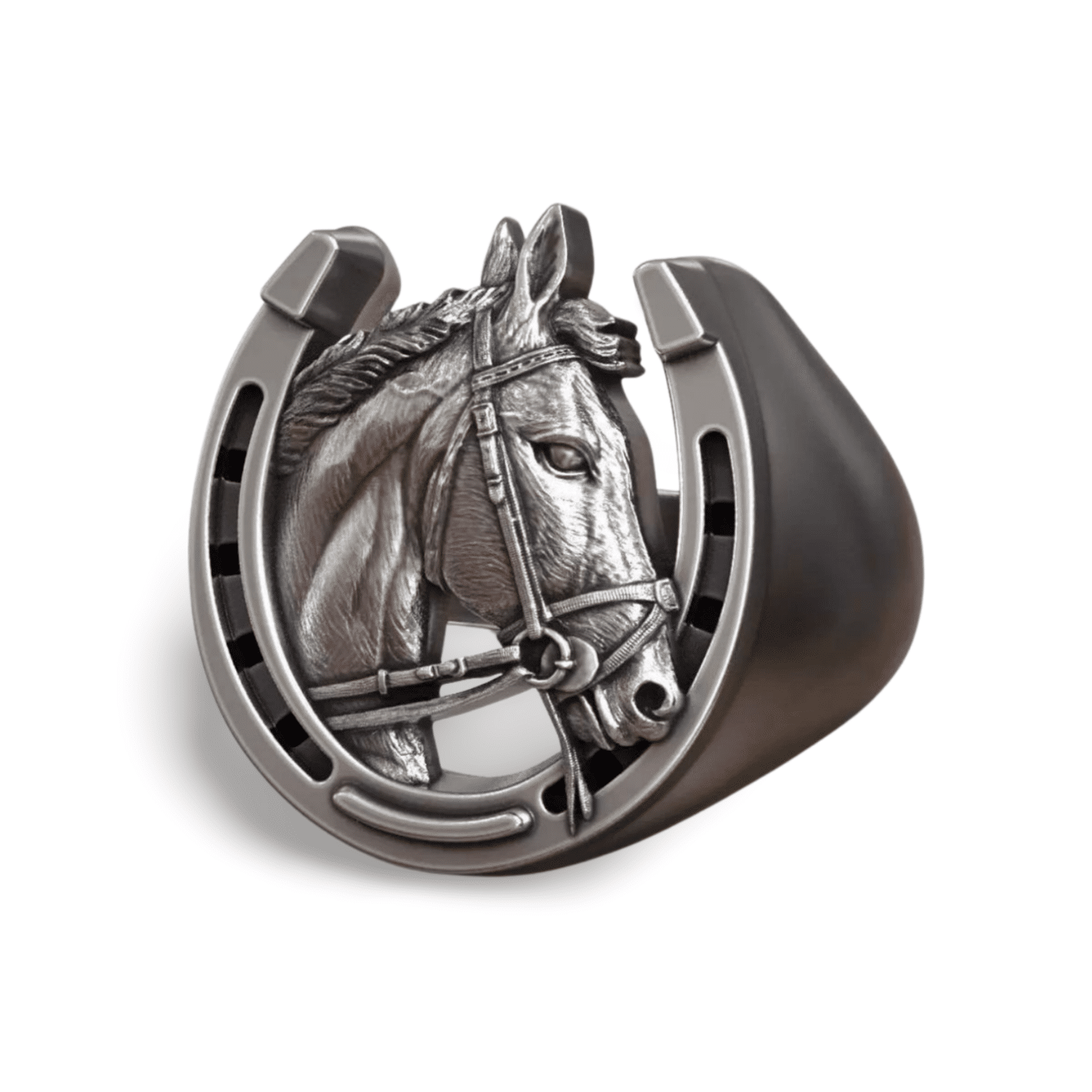 This handcrafted 925 sterling silver ring features a detailed horse head framed inside a classic lucky horseshoe. Designed for equestrians, horse lovers, western style enthusiasts and anyone who believes in good fortune, this bold statement ring blends symbolism and craftsmanship. The sculpted mane, bridle details, and deep relief textures give the ring a powerful presence, while the horseshoe represents protection and luck. A perfect gift for riders, cowboys, farriers, ranchers, and collectors of unique animal-themed jewelry.