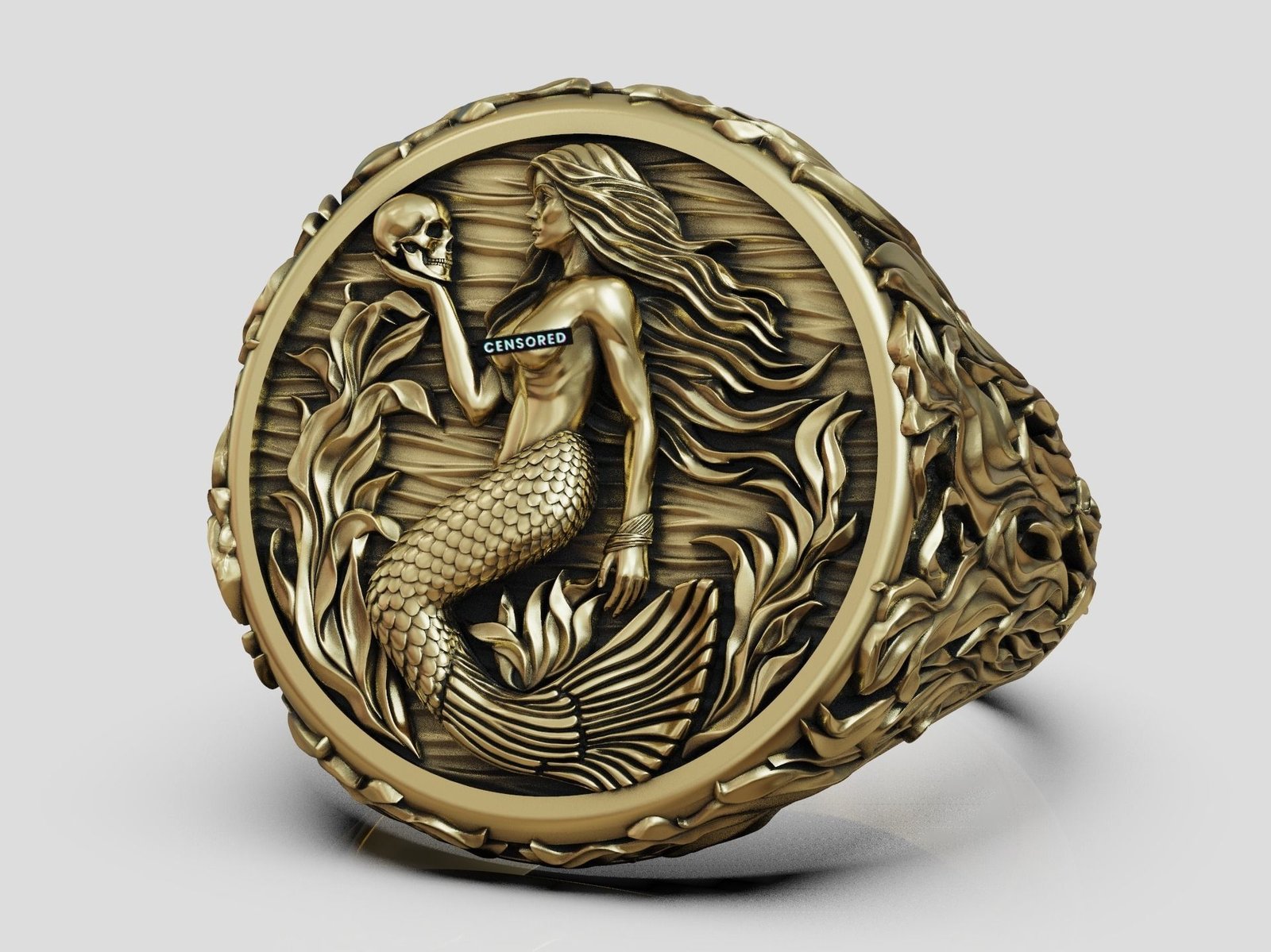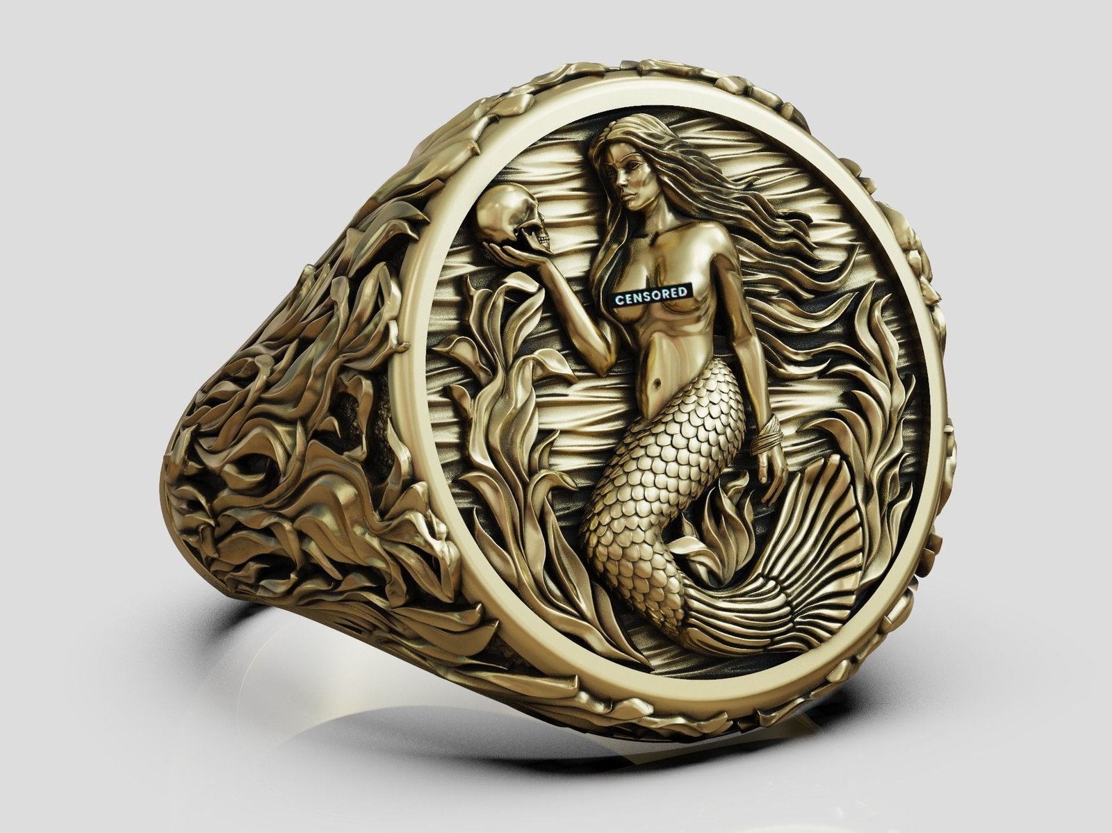 Mermaid siren seaweed signet ring opens like a secret told softly.
