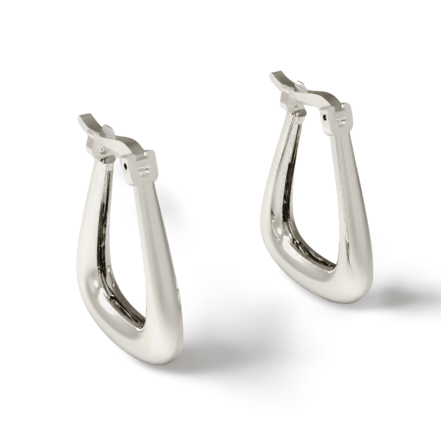 Handcrafted minimalist U-shaped hoop earrings made from solid 925 silver. Smooth, modern, chunky form with secure hinged clasp. Lightweight, daily-wear friendly and polished to a mirror finish.