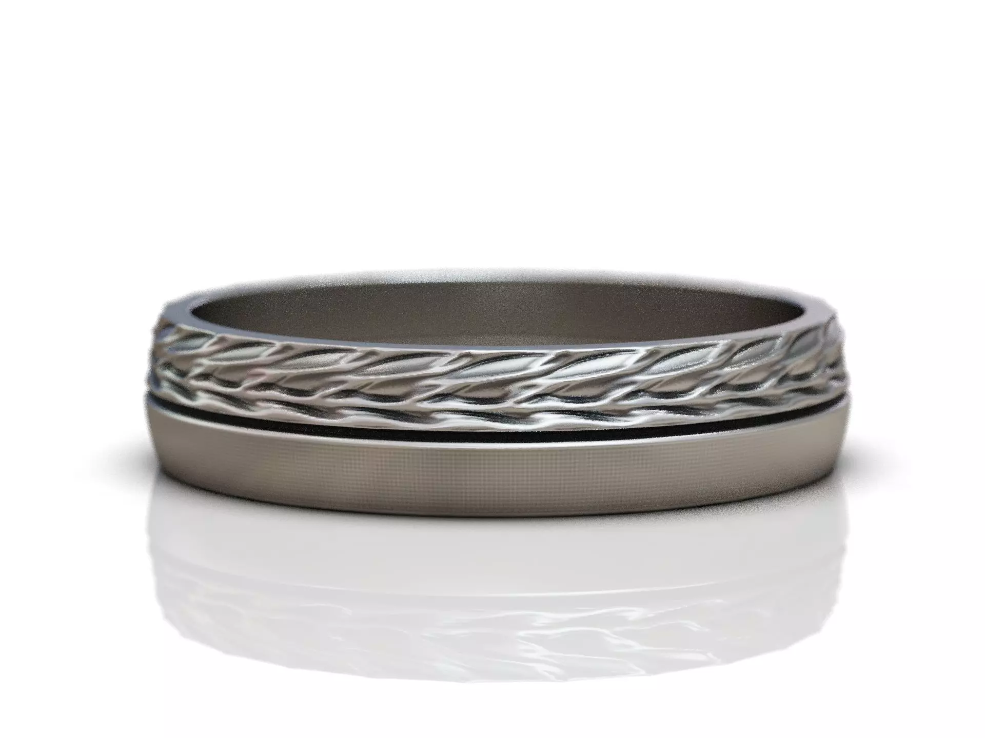 Meet Ornamental ring with woven pattern and textured surface: it arrives as intention.