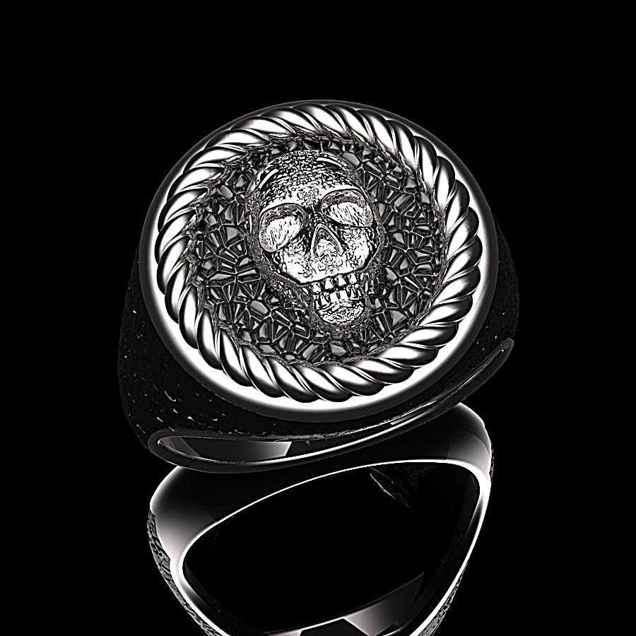 Hand-finished in 925 sterling silver, it holds light in tasteful restraint. Ring with a skull 11. mortality and the fleeting nature of time. memento mori. rebirth. Lines resolve with clarity; the piece reads as statement and whisper at once.