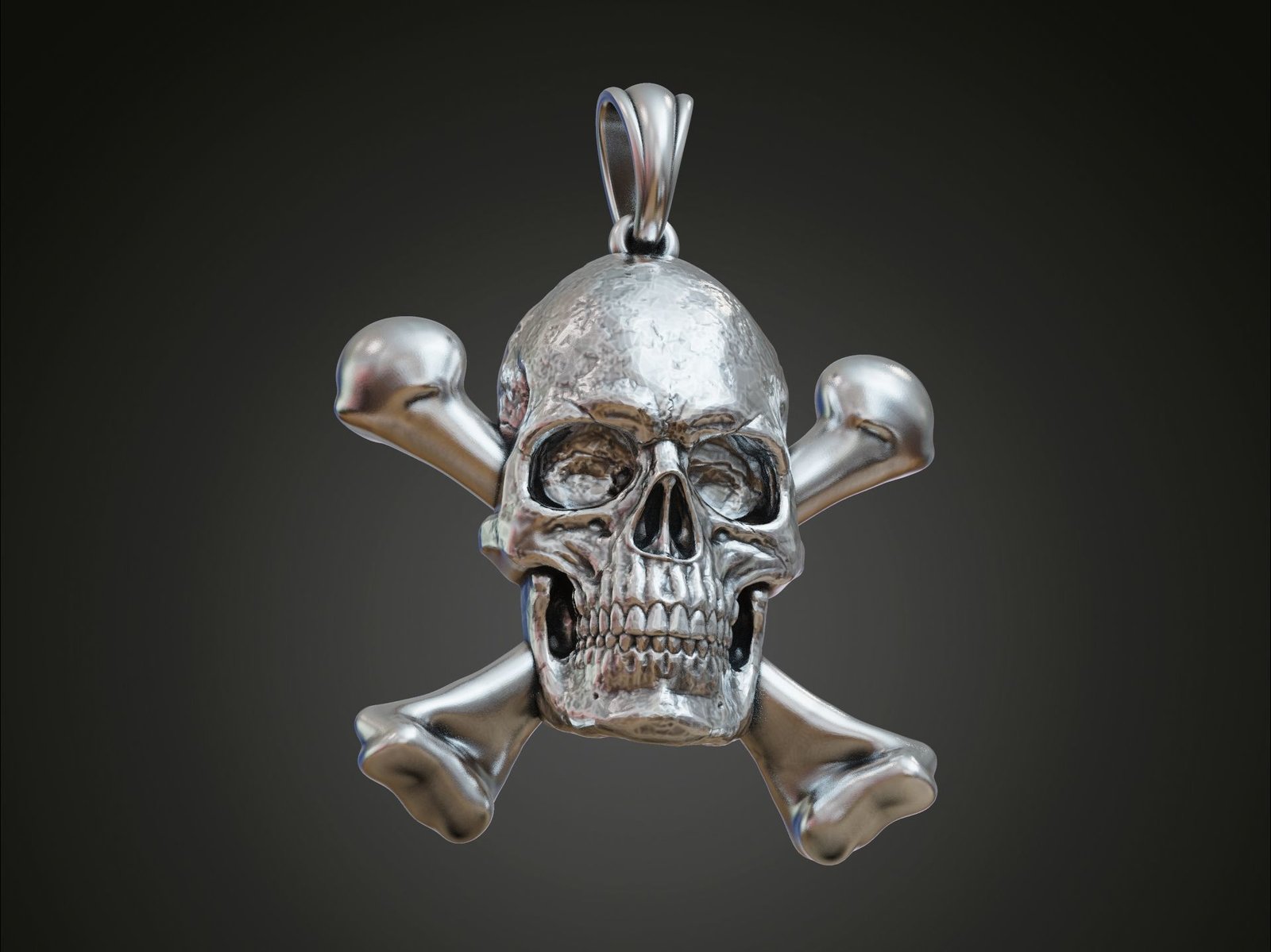 Skull and Crossbones 925 Sterling Silver Pendant Gothic Pirate CharmSkull and Crossbones 925 Sterling Silver Pendant Gothic Pirate Charm