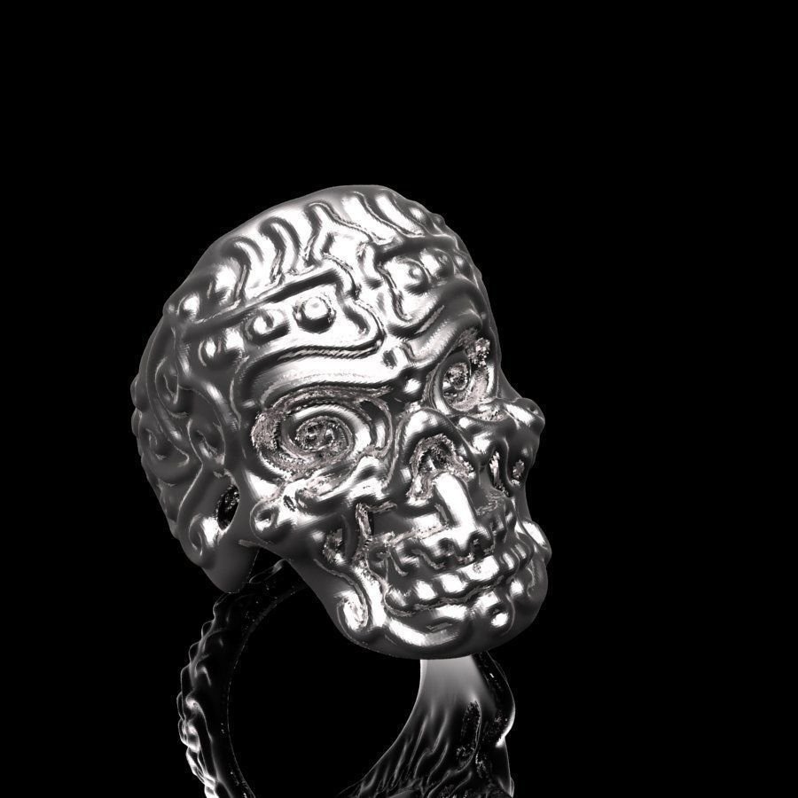 Rendered in 925 sterling silver, the surface keeps a clear, honest glow. skull ring. mortality and the fleeting nature of time. memento mori. rebirth. Lines resolve with clarity; the piece reads as statement and whisper at once.